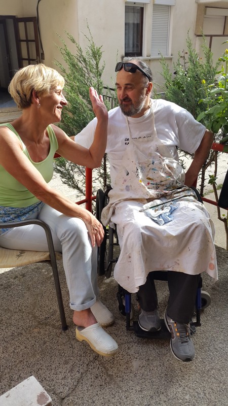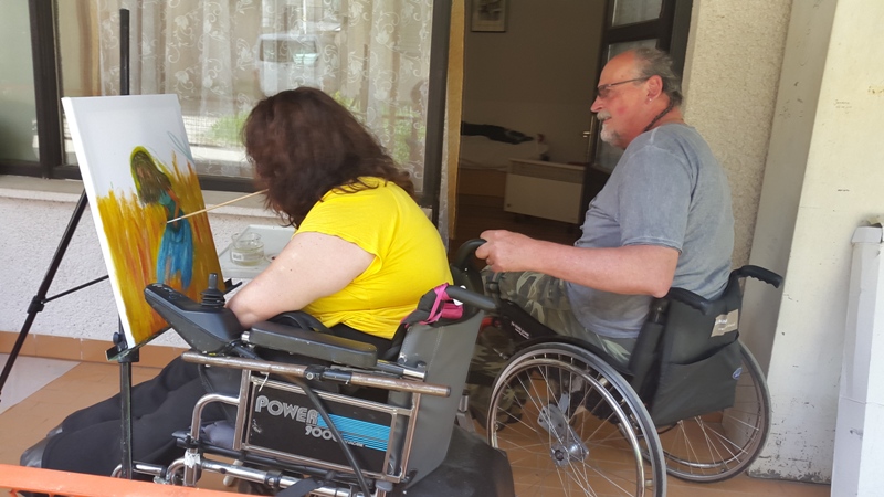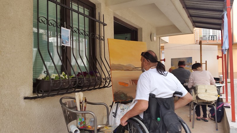 Уметниците беа сместени во апартманите на Мобилност Македонија во Охрид, а сојузот како и секоја година, обезбеди сликарски материјали (платна, бои, штафелаи и останати материјали) и исхрана за сите учесници на колонијата. Интересот за учество на колонија е голем и од здруженијата на лицата со телесен инвалидитет, но и од академските сликари. Мобилност Македонија се труди постојано да има нови учесници. На оваа колонија има двајца учесници кои заради својата инвалидност цртаат со уста. Една од нив е нашата сликарка-аматер Роза Мојсоска, која е член на светското здружение на лица кои цртаат со уста и нозе. Во својата изјава за медиумите. Роза истакна дека е задоволна од учеството на колонијата и од она што го насликала во изминативе денови. Оваа година инспирација и беше лебедот од Охридското езеро, но наслика и девојка во ливада. Како што истакна Роза, таа многу ги сака ливадите и цвеќињата. Господ и дал дарба за цртање и тоа го пренесува на платно.