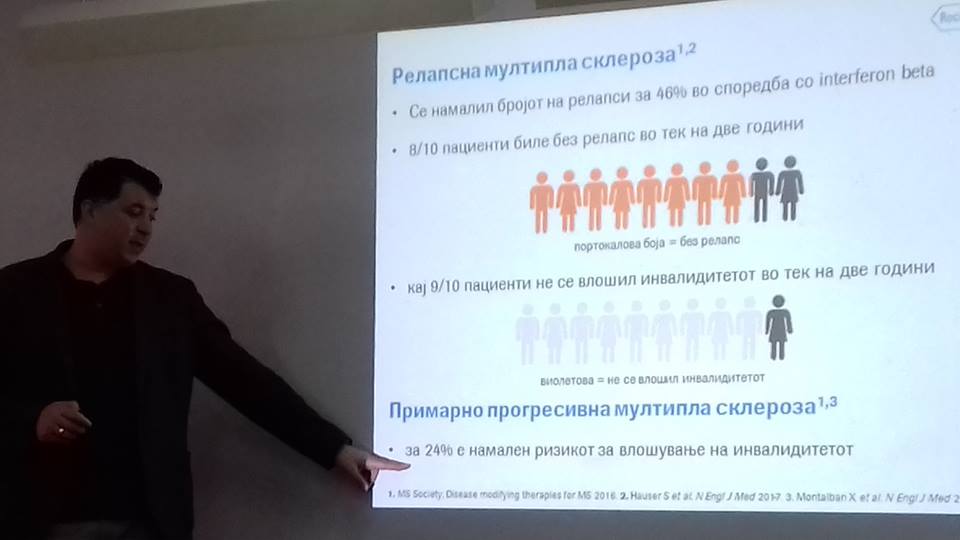 -Д-р Александар Смоковски, медицинкси менаџер за хематологија и невронаука, РОШ Македонија, со презентација за РОШ во невронуака и резултати од клиничка студија кои го истражуваа лекот Оcrelizumab;