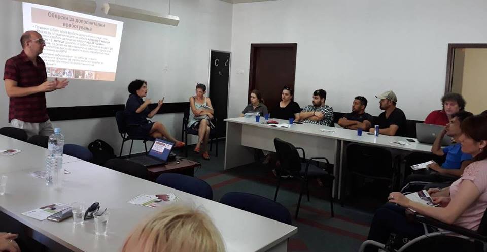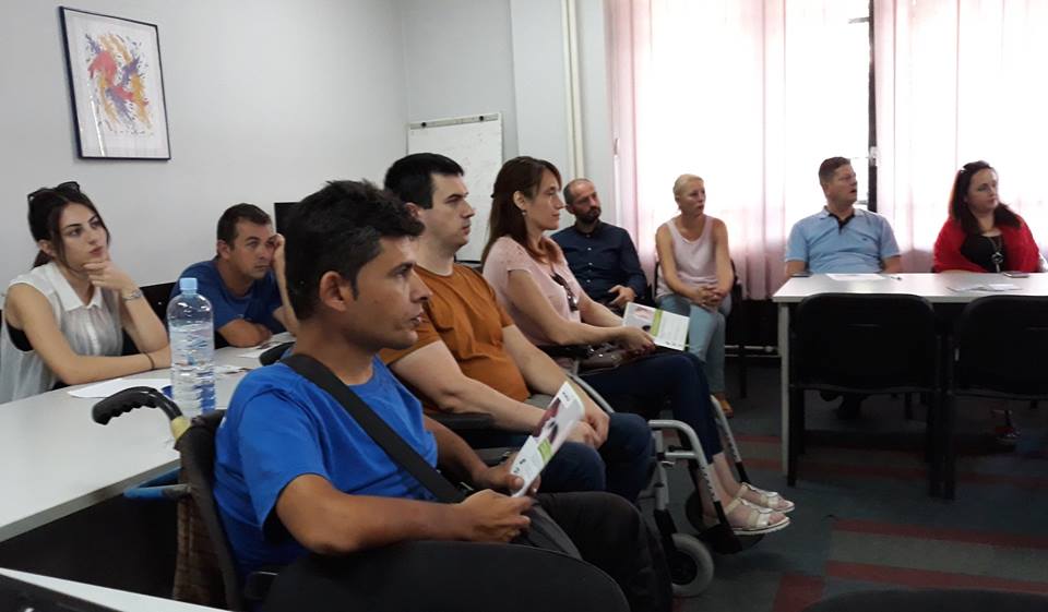 1На 10.08.2018 година во просториите на ДХО „Даре Џамбаз“ во Скопје, претставниците на УНДП, Урим Касапи - програмски координатор за социјални инклузии, Дамјан Митев - проект менаџер, Сузана Ахмети, Марија Трифуновска и Ана Димовска Котевска, во соработка со Мобилност Македонија, одржаа едукативна работилница на која присуствуваа 25 лица од кои половината лица со телесен инвалидитет, членови на Мобилност Македонија од Скопје и Битола.
