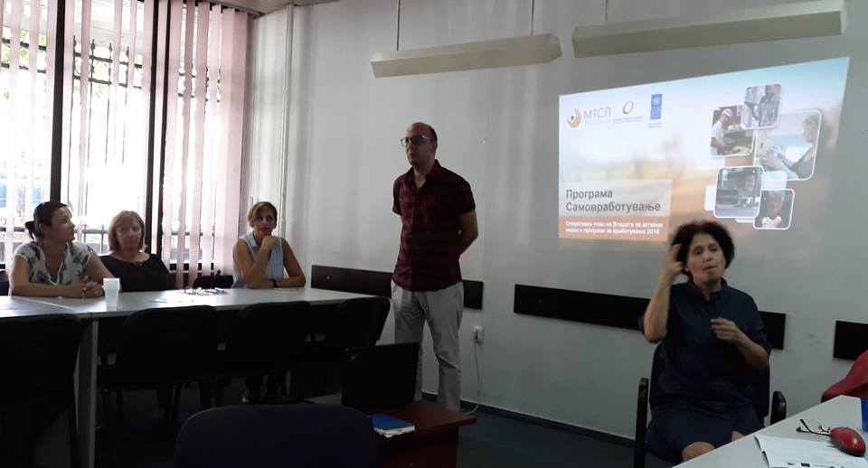 Проект Менаџерот Дамјан Митев ја презентираше програмата за Самовработување која УНДП ја спроведува во соработка со АВРМ, ги образложи можностите за основање свој бизнис преку програмата за самовработување, условите и постапката за аплицирање во програмата, како и бенефитите од менторската поддршка која се нуди на идните корисници, со еден збор кажано, детално ги образложи сите бенефити, задолженија и обврски кои програмата ги носи со себе, а со кои ќе се сретнат лицата со инвалидност кои ќе се пријават за користење на грантот при основање сопствен бизнис.