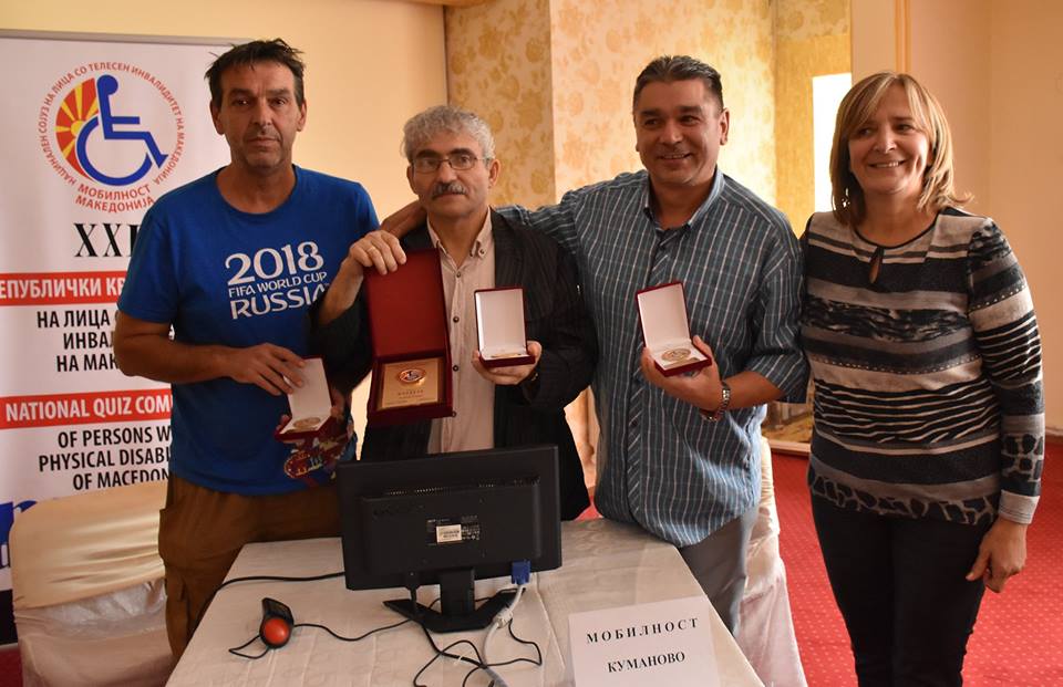 На 20-21.10.2018 година во хотелот „Цар Самуил“ во с.Банско, Струмица, во организација на Националниот сојуз на лица со телесен инвалидитет на Македонија - Мобилност Македонија, се одржа дваесет и четвртиот Републички квиз натпревар на лица со телесен инвалидитет на Македонија. На квизот му претходеа тестирања низ кои поминаа повеќе стотици членови на здруженијата, членки на сојуот, за да на крајот 16 екипи составени од по три членови настапат на истиот.