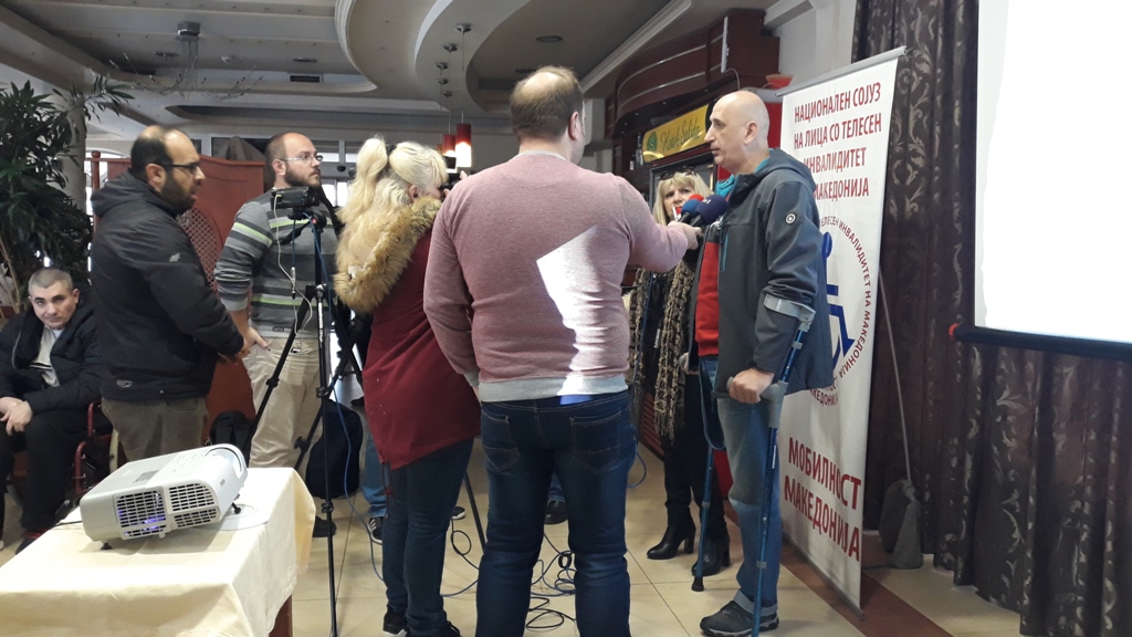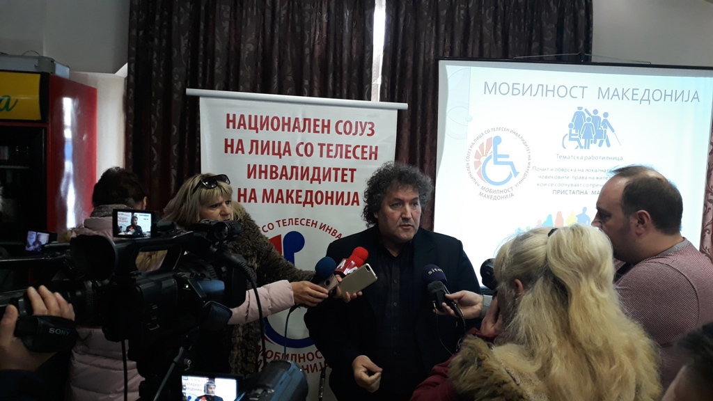 потребите на лицата со телесен инвалидитет. Оваа година многу напорно работевме на две теми: пристапност и ортопедски помагала. Во тек е носење на Закон за градење, каде од страна на нашиот Сојуз во континуитет се работи со Министерството за труд и социјална политика, преку сугестии и теми да се подобри текстот на законот за поголема пристапност на лицата со телесен инвалидитет, бидејќи архитектонските бариери се основна пречка за целосна социјална инклузија на лицата со телесен инвалидитет. Попреченото движење по тротоарите и непристапноста до одредени институции, како и несоодветните ортопедски помагала се главните проблеми за чие решавање е потребен ангажман на локалните заедници и на државните институции“, посочи Бранимир Јовановски – претседател на Мобилност Македонија.